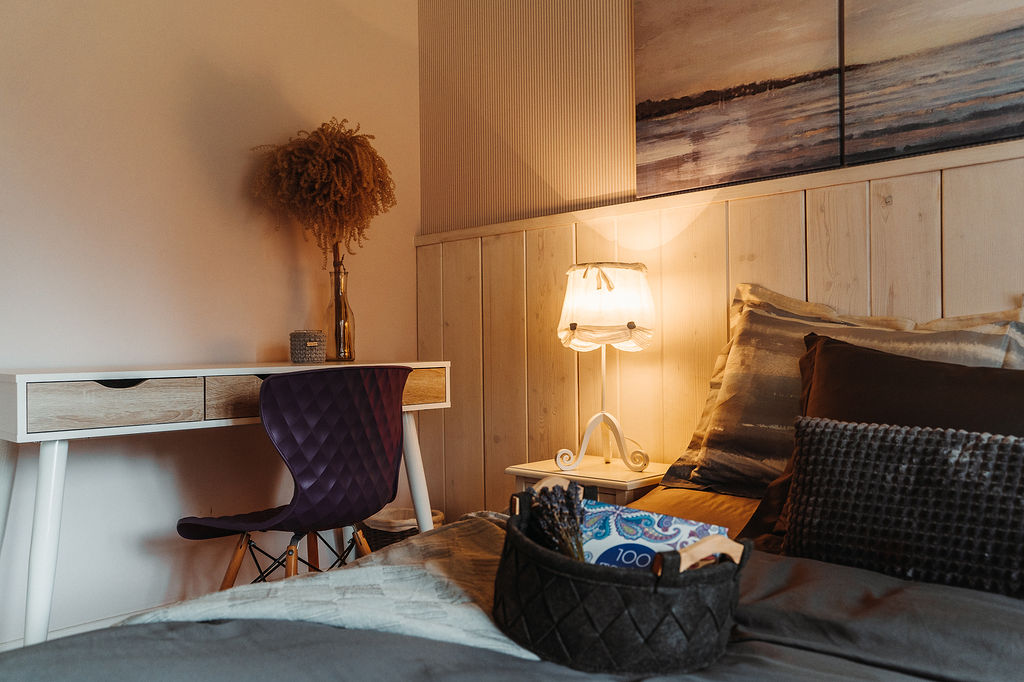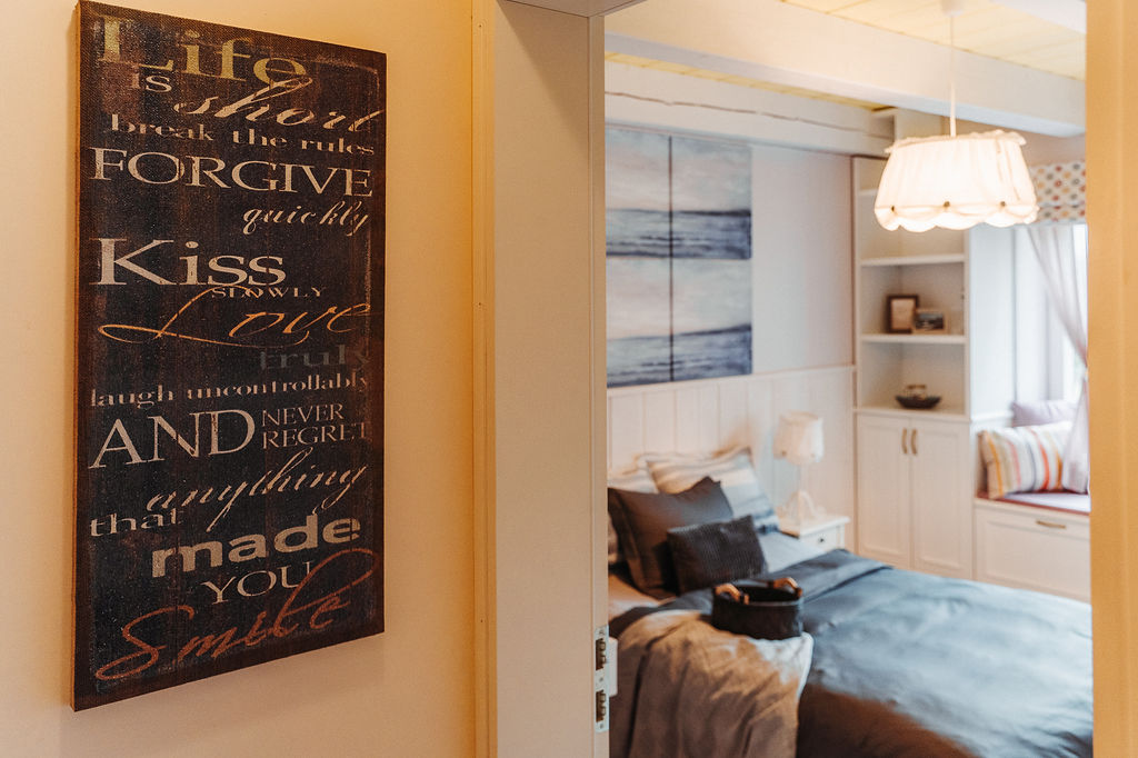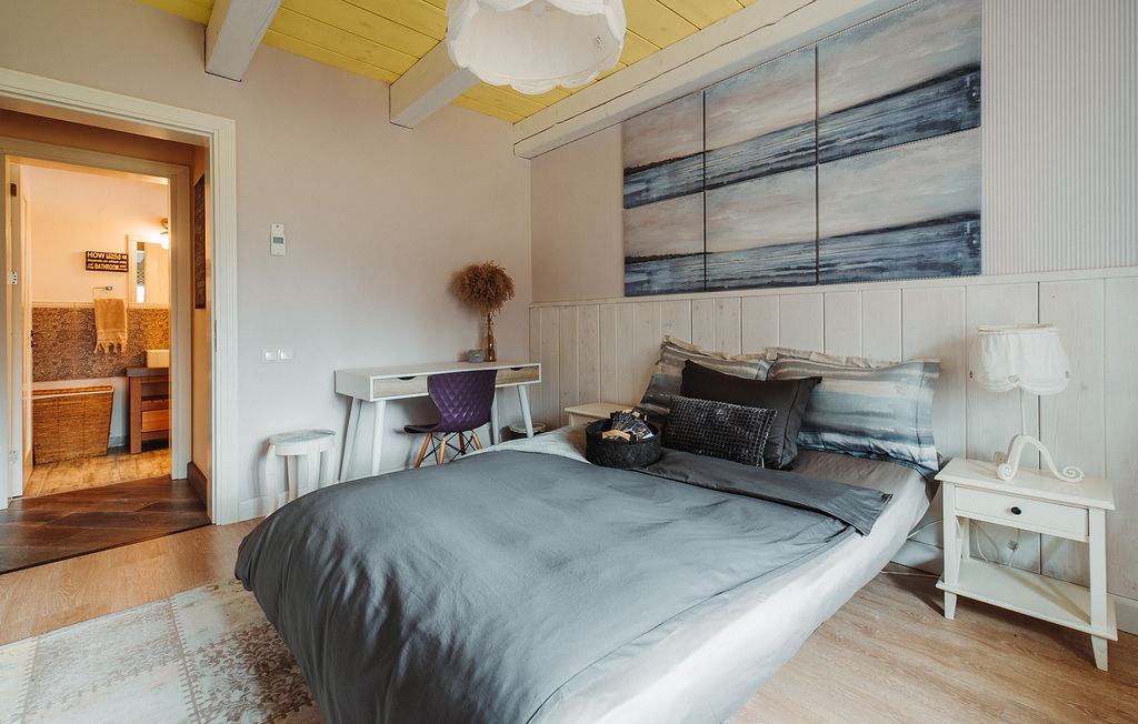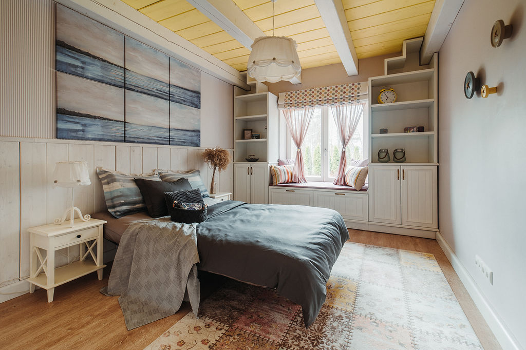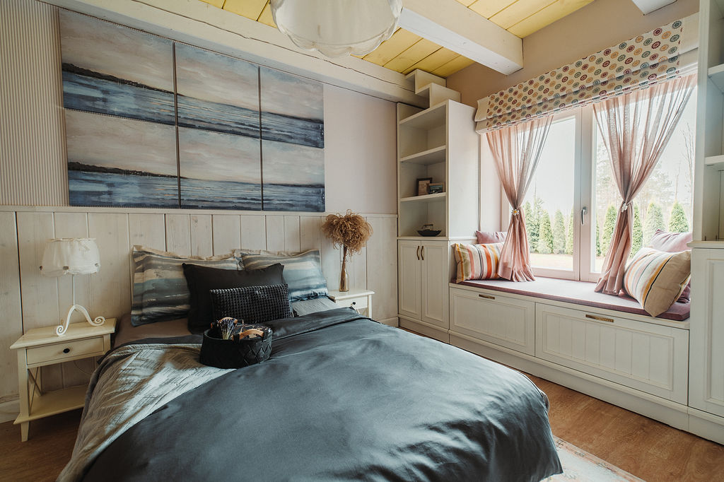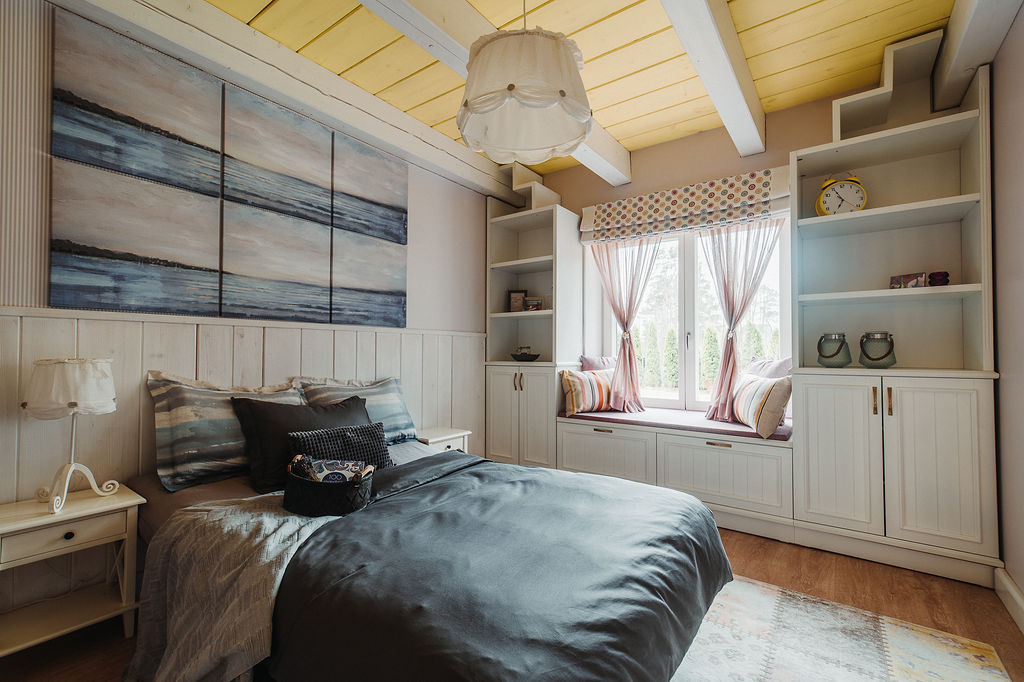 Viena no guļamistabām ar skatu uz dārzu, kur komfortabli un harmoniski jutīsies gan bērni, gan pieaugušie. Gultas izmērs 140*200cm