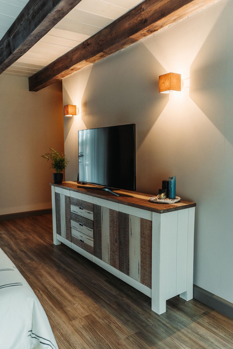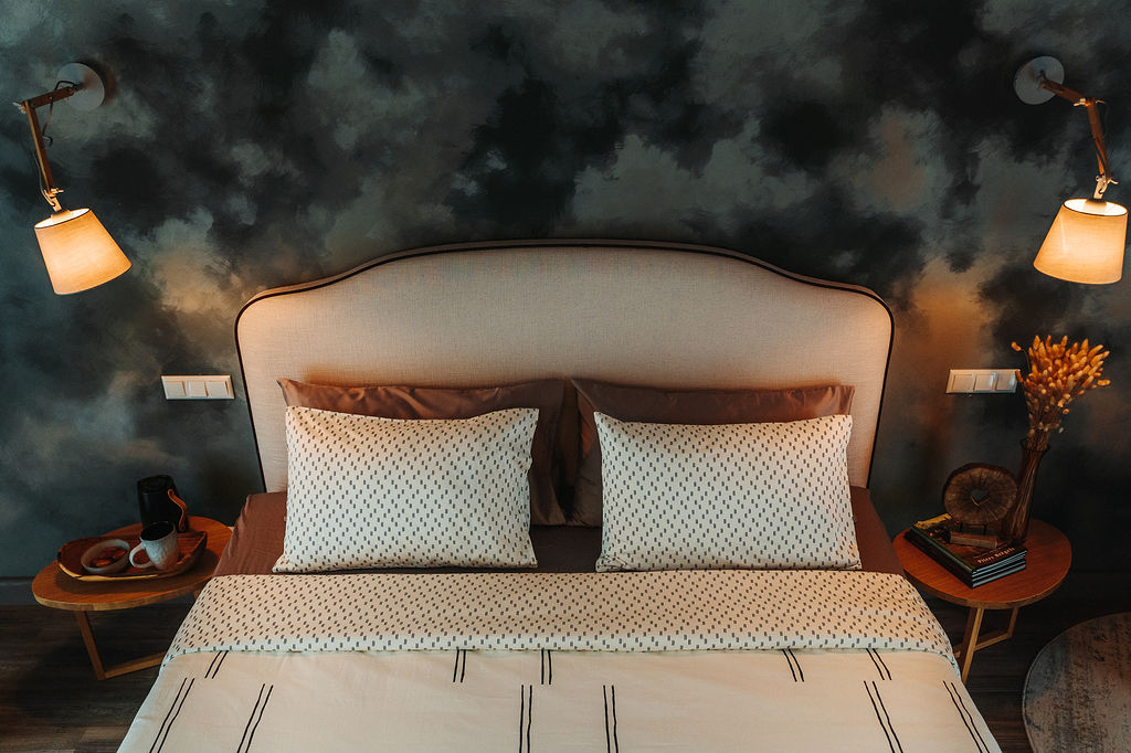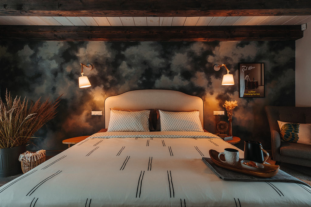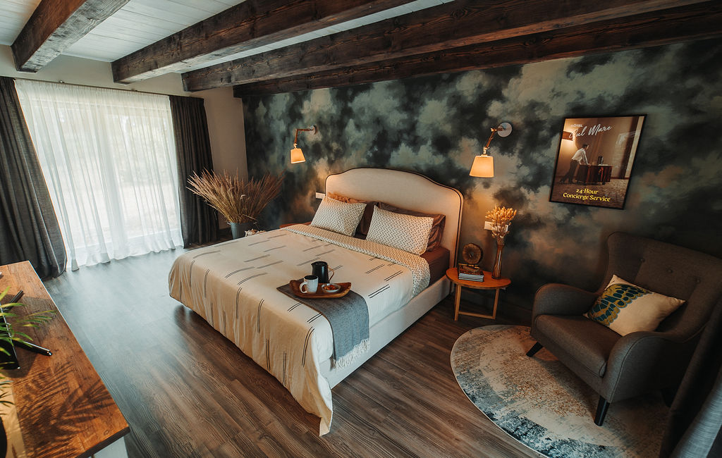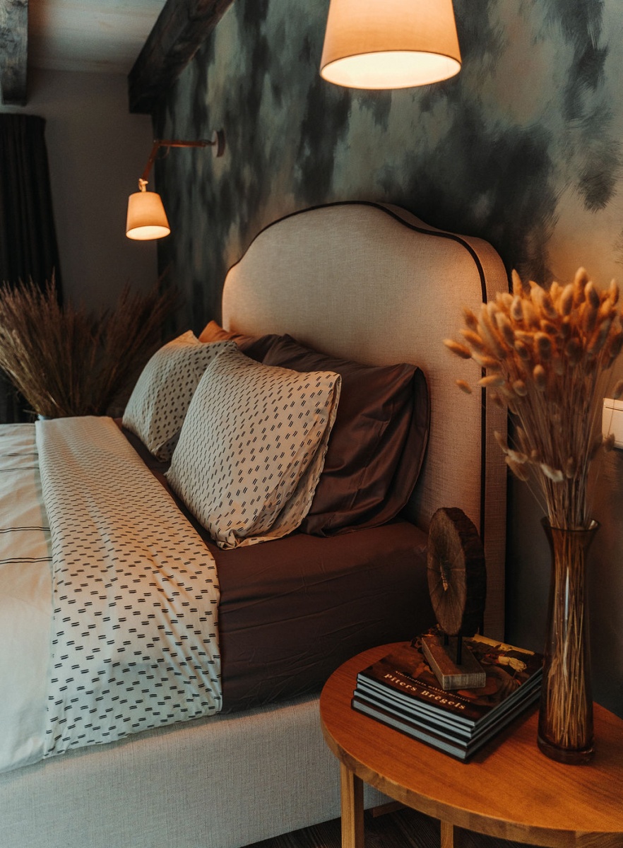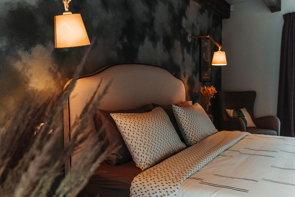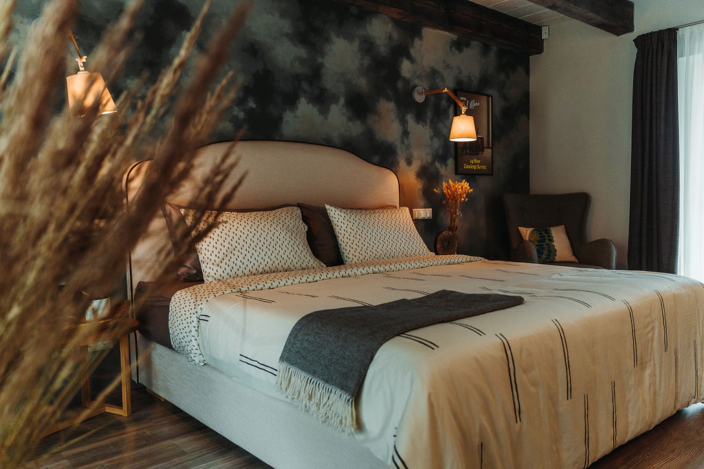 Plaša un mājīga master guļamistaba jebšu "vecāku gals" Mežnorās ar privāto vannasistabu, skapja telpu, skatu gan uz kāpu zonu caur stikla bīdāmajām durvīm, gan uz dārzu ar izeju uz privātu terasi un piekļuvi apsildāmajam baseinam. Naktsmieru baudi plašajā 2m*2m "Nakts Mēbeles" gultā.