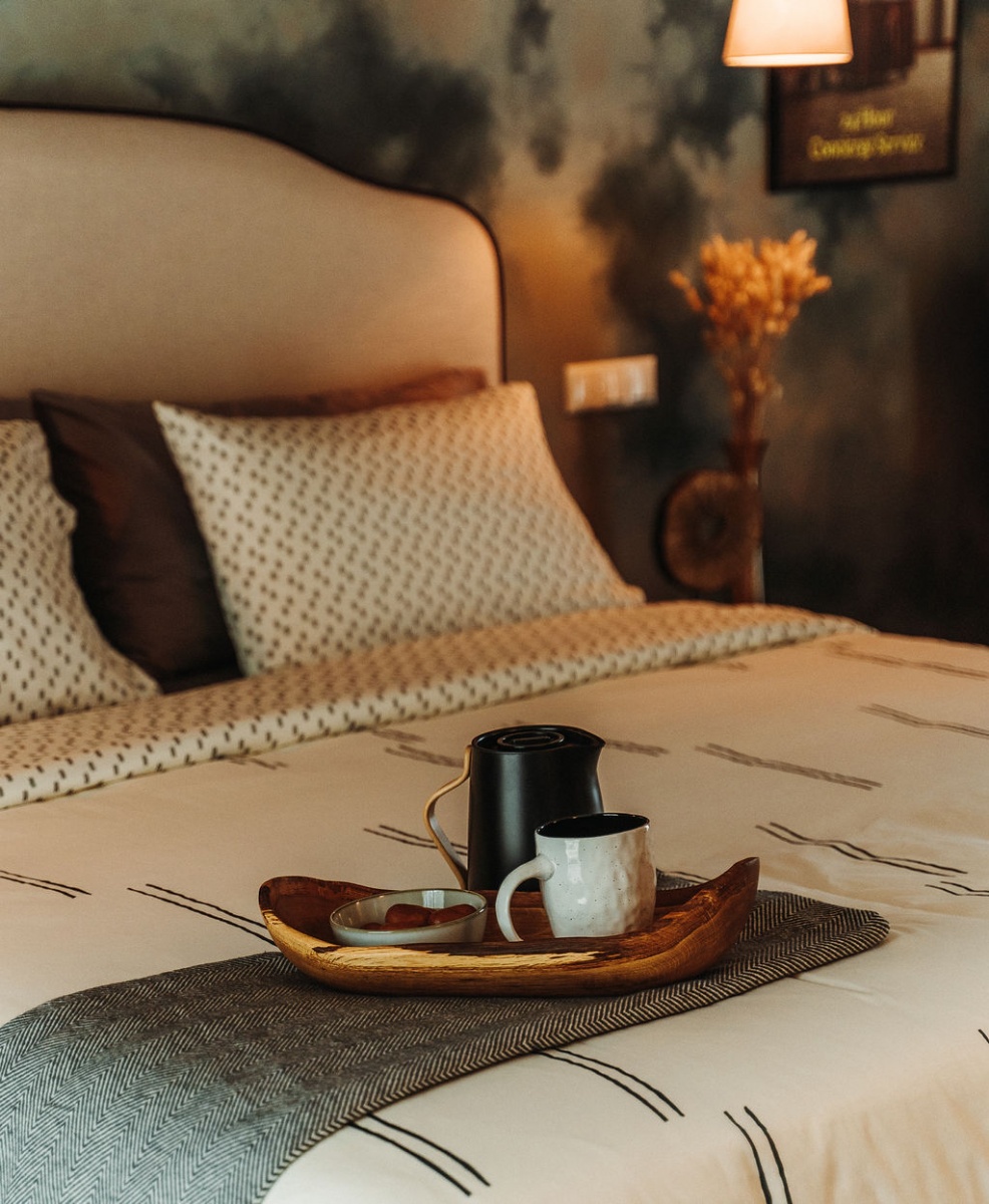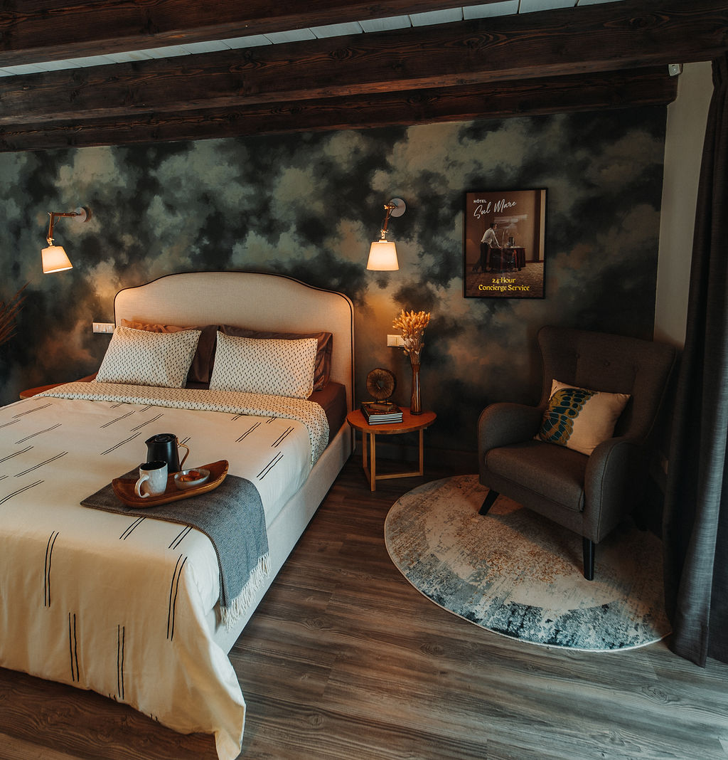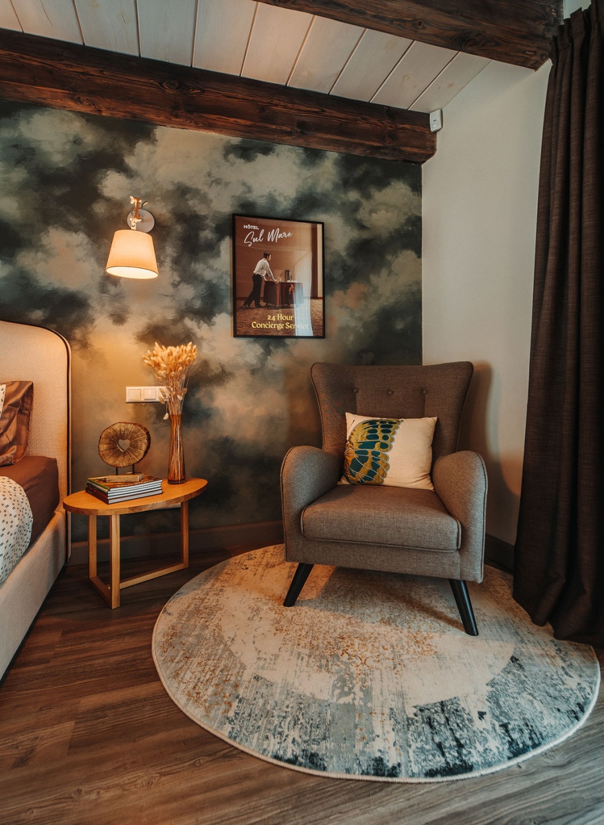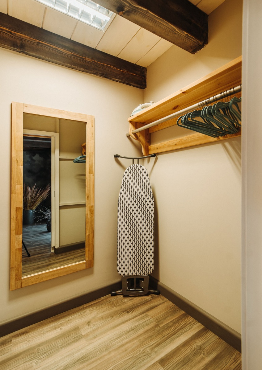 Plaša un mājīga master guļamistaba jebšu "vecāku gals" Mežnorās ar privāto vannasistabu, skapja telpu, skatu gan uz kāpu zonu caur stikla bīdāmajām durvīm, gan uz dārzu ar izeju uz privātu terasi un piekļuvi apsildāmajam baseinam. Naktsmieru baudi plašajā 2m*2m "Nakts Mēbeles" gultā.